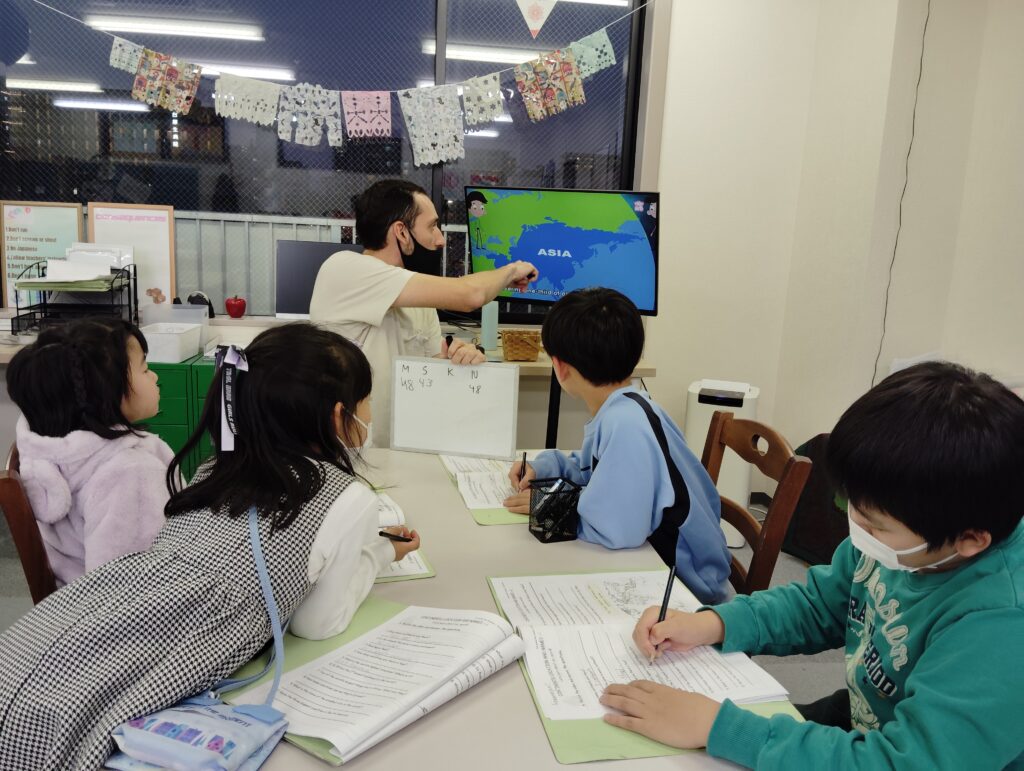 「日本はどの大陸にあるの?」「先生の国はどの大陸?」といった身近な話題を交えながら進めることで、お子さんもより興味を持って学びに取り組むことができますね。