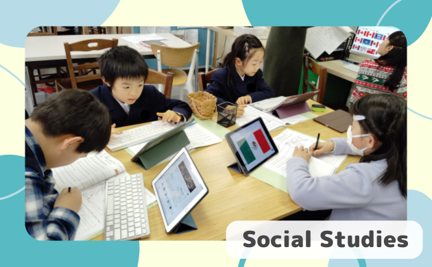 英語で話したり聞いたり、読んだり書いたり、イラストを描いたりリサーチをしたり…