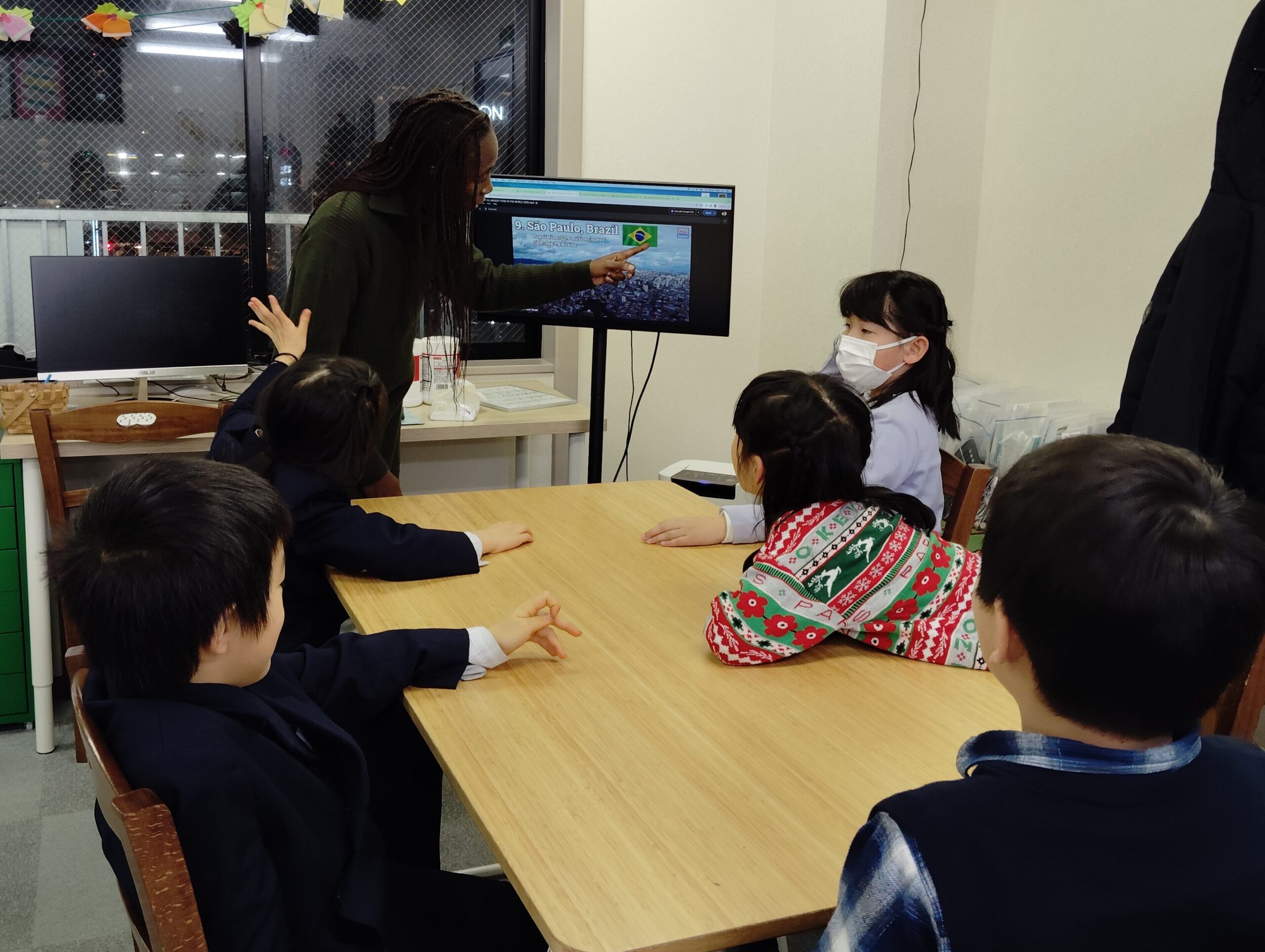 本日のアクティビティでは、「社会科」の時間の中に「世界で一番大きな都市」をテーマに、世界の都市の人口について英語で学習しました。