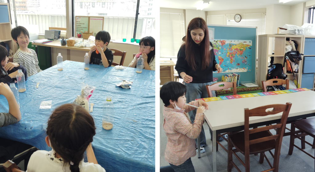 実際にはどんなことが起こるのか、英語で予想しながら楽しく実験ができましたね。